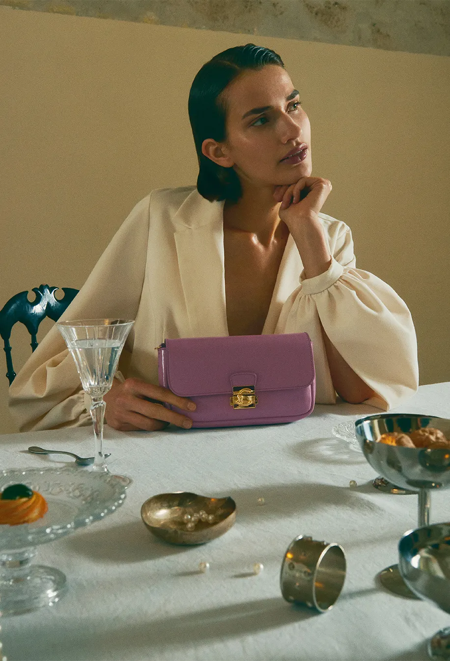Η Coccinelle C–ME Lock, η ολοκαίνουργια εμβληματική σειρά της καμπάνιας Άνοιξη/Καλοκαίρι 2026, ενσαρκώνει το οπτικό και αισθητηριακό σύμπαν του θέματος της συλλογής: «Her Deepness». Αποτελεί μέρος ενός εσωτερικού κόσμου ήρεμου στοχασμού, που μας προσκαλεί να ανακαλύψουμε τη χάρη της σιωπής και τις λεπτομέρειες που αναδύονται από τα βάθη.